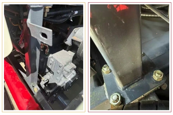 底盤部分:底盤與駕駛室、糧倉支架連接處加強。